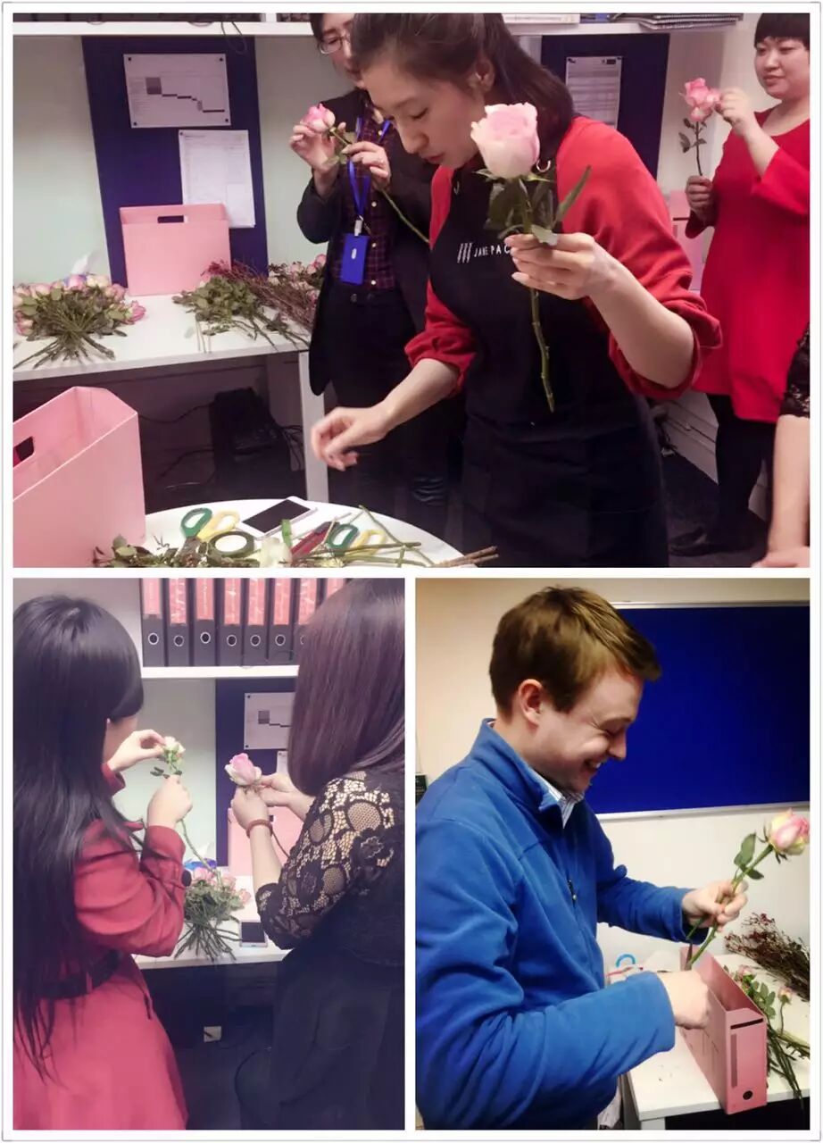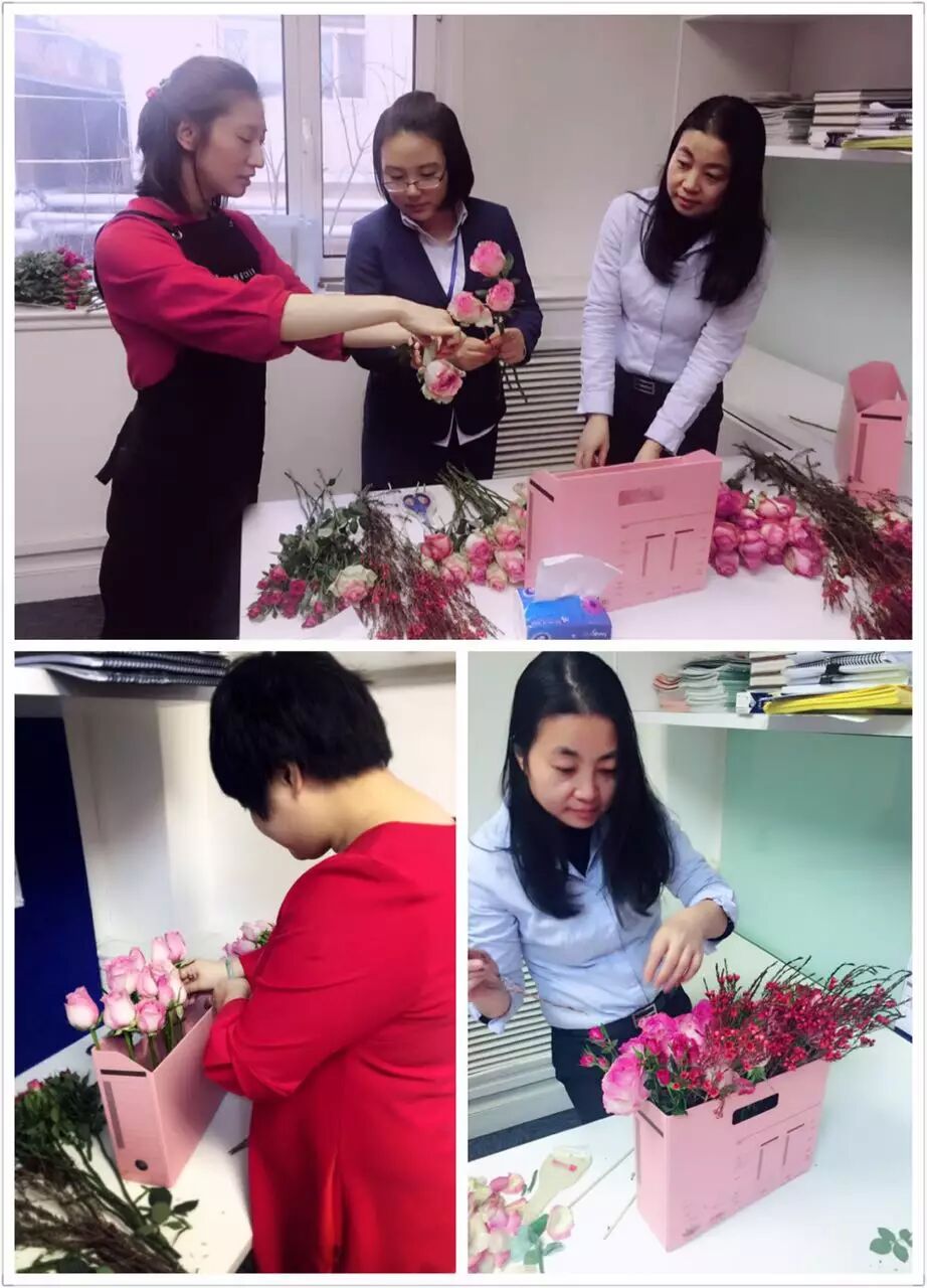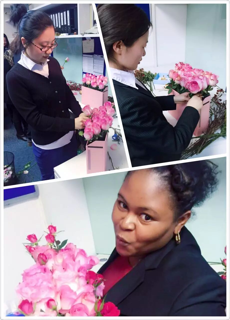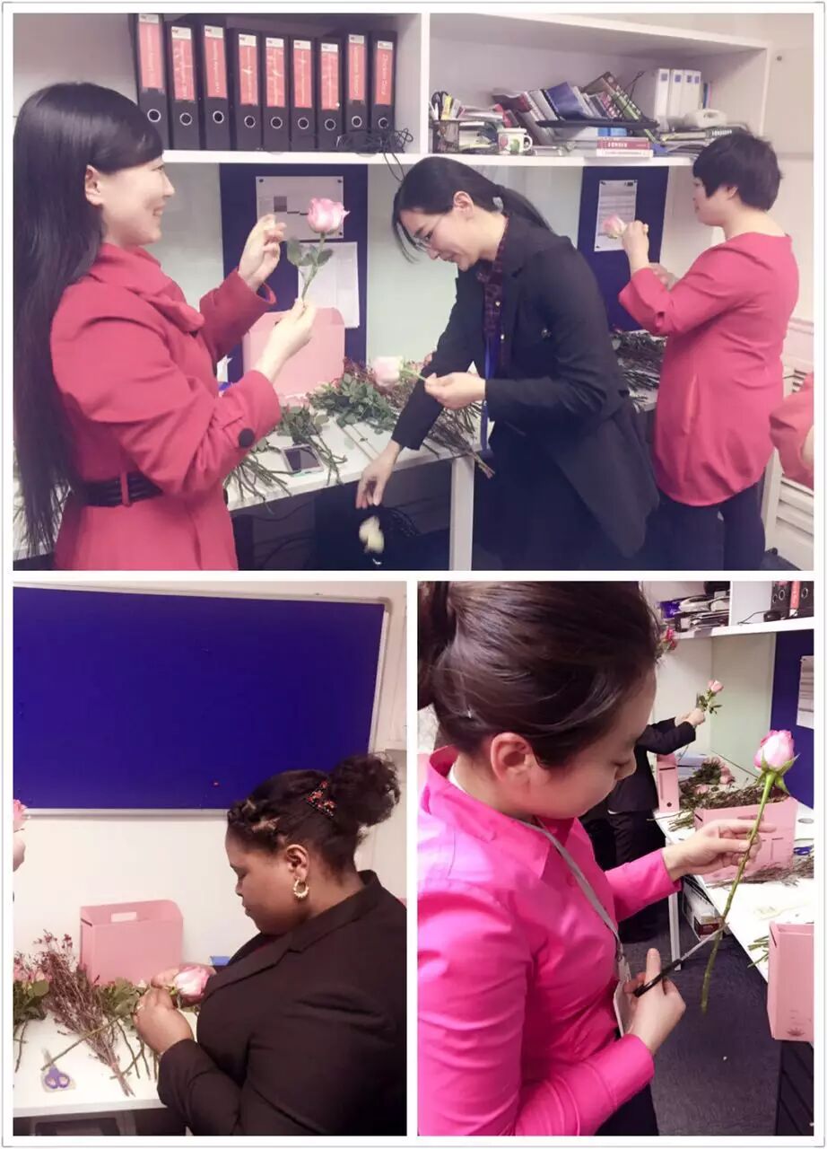 作为刚刚过去的妇女节的礼物,我们的老大Michael给我们带来了一个“粉红色的惊喜”!他请了专业的插花师来,让我们这群爱花,爱美的姑娘们体验了一把专业插花的乐趣。