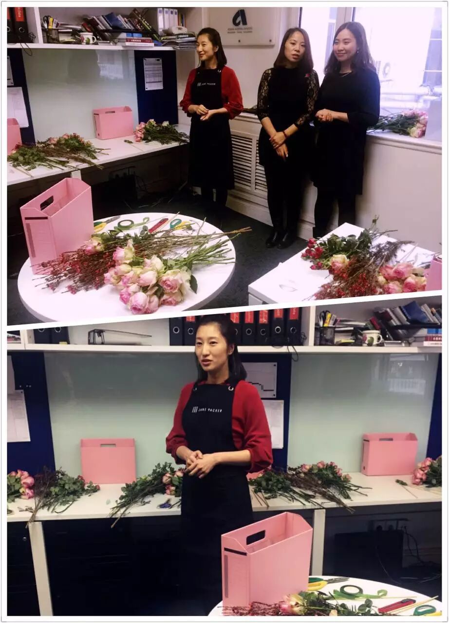 在插花师的带领下,我们学会了怎样修整玫瑰花瓣,怎样刮掉玫瑰上尖锐的刺,怎样排列主花(玫瑰名字叫Boyfriend)怎样把蔷薇花,腊梅,兰花……点缀其中,怎样制作兰花的营养瓶……